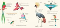 Conoceremos los pajaritos que podemos avistar en nuestras ciudades y bosques más cercanos, como el gorrión, la golondrina, la paloma o el pájaro carpintero; profundizaremos en especies tan asombrosas como el águila, el flamenco, el avestruz o el pingüino emperador; finalmente, nos asombraremos ante los flamantes colores del plumaje de otras especies como el periquito, el pavo real o el colibrí.